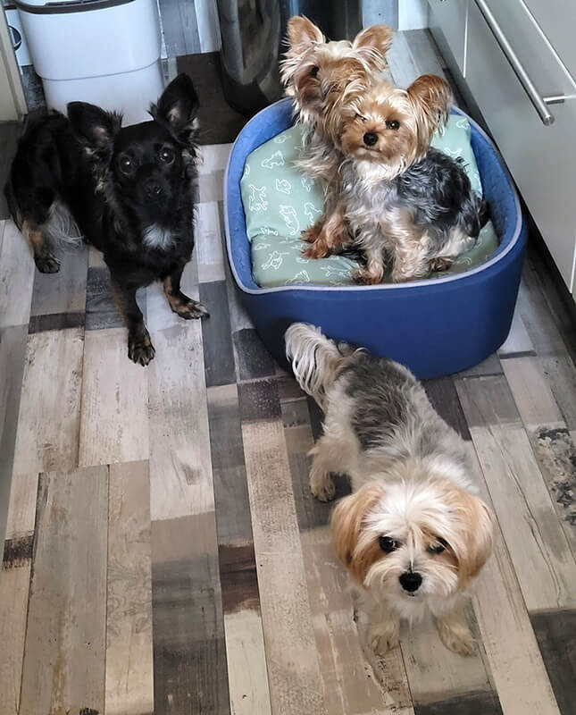 Nun ist Cindy (Belinda) bereits ein Monat bei uns. Im Rudel wurde sie aufgenommen. Sie ist so entzückend, jedoch sehr ängstlich. Meinen Mann geht sie leider nicht so zu, dürfte vor Männern Angst haben. Sie wird jedoch immer neugieriger und wie man bettelt hat sie schon herausgefunden. Sie schläft bei mir am Kopfpolster. Ich bin sehr verliebt in sie. Alles klappt leider noch nicht, aber wir sind zuversichtlich.