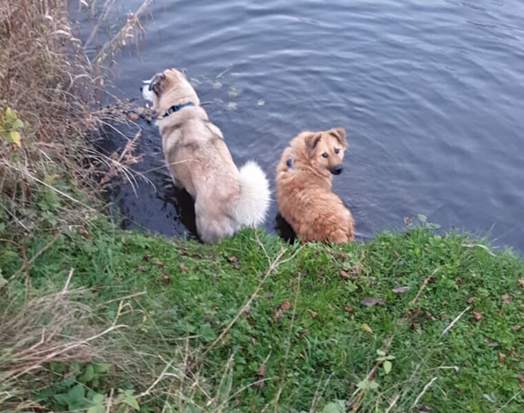 Meine beiden Ungarn verstehen sich super - Cinimini ist eine richtige Wasserratte und liebt es, gemeinsam mit ihrem „großen Bruder“ die Pferde am Hof zu hüten 😄