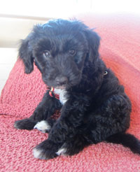Unsere Coco(Polla) ist schon sehr groß geworden und wiegt schon 6 kg. Sie kann schon Sitz, Platz, Bleib und Pfote. Sie spielt am liebsten draussen im Garten.Coco hat schon unsere Katze Chipsy kennengelernt und will immer mit ihr spielen. Aber Chipsy möchte das nicht und rennt immer davon.