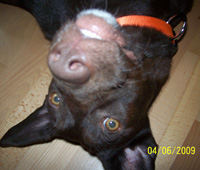 Mit dem Hund unserer Eltern versteht sie sich sehr gut, mit unseren beiden 10 Monate alten Katzen gibt es noch die eine oder andere "Verständigungsschwierigkeit" wobei vor allem das "Spielen wollen" von den Katzen missverstanden wird und einmal in einem blutigen Kratzer quer ueber die Schnauze geendet hat. Aber auch der wurde ohne Gejammere erduldet und es ging gleich wieder munter weiter.