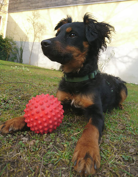 Am liebsten spielt er Ball, badet im Schnee und treibt uns, seine Herde zusammen.