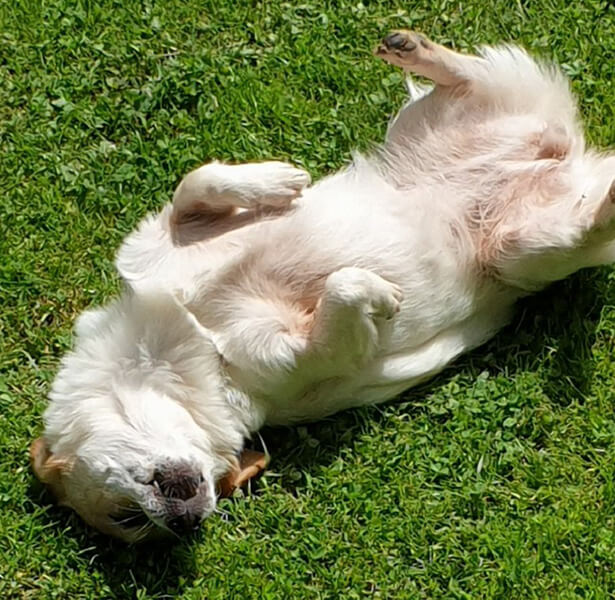 Alles passt wunderbar und Daisy ist gesund und sehr selbstbewusst. Sie folgt ausgezeichnet und sonst macht sie vor allem das, was sie will, nämlich schlafen und spazieren gehen. Mit Leo geht's gut und wenn es ihr passt, spielt sie mit ihm.