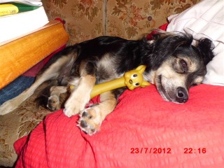 Es ist wieder an der Zeit Dir so einiges von mir und meiner Familie zu erzählen. Leider habe ich Dich beim Hundetreffen im Prater nicht getroffen :(. Dafür habe ich Carol und meine Betreuer aus Ungarn wieder gesehen. Ich kann Dir sagen, dass war eine Freude :). Meine Freude war soooooo groß, dass ich Silvia, aus dem Stand heraus, über den Zaun, in den Arm gesprungen bin. Auch Sie hat sich sehr gefreut mich zu sehen und wie gut ich jetzt aussehe. Mit meiner Familie war ich 3 Wochen weg. Sie nennen es Urlaub !!! Der rote Kater wurde zum jungen Herrl gegeben und so hatte ich meine 2 ganz für mich alleine :) Nachdem ich ja Meisterin im Leinendurchbeißen bin, wurde ich kurzerhand zum Kettenhund. Da aber die Kette lange genug war und meine 2 immer bei mir waren, konnte ich mich doch relativ frei bewegen und hatte keinerlei Probleme damit. Meine Familie wollte auf keinen Fall riskieren, dass mich, wenn ich abhaue, der Jäger erwischt. Dazu muss ich noch sagen, dass meine Familie einen Wohnwagen hat, der in einer sehr schönen Gegend steht und rundherum Wald ist … und der Jäger. Es kommen auch ganz junge Rehe sehr nahe und jede Menge Eichhörnchen und Vögel sind dort. Ich kann Dir sagen: ein Paradies … jede Menge Mauslöcher wo ich beim spazieren gehen wie eine Wilde graben durfte. Nur diese Mistviecher haben doch tatsächlich mehrere Ausgänge :( Nach einer Woche fuhren wir sehr lange mit dem Auto in das ich auch gekotzt habe. Es hat aber niemand mit mir geschimpft, denn ich habe angezeigt, dass etwas ist. Nur war keine Möglichkeit stehen zu bleiben … naja und da is halt passiert. Wir haben sehr viele Pausen gemacht und sie haben mit mir gespielt und sind herum gegangen damit ich nur ja genug Bewegung bekomme. Als wir dort angekommen sind habe ich mal durchgedreht und jedem und allem meine Zähne gezeigt, geknurrt und gebellt. Das hat sich aber schnell gelegt und dann war wieder Urlaub :) Es waren dort viele hohe Berge und was meine Familie als Urlaub bezeichnete war die reinste Schinderei für mich :( Da gingen mein Frauerl und Herrl wandern :) Mein Gott waren die langsam!!! Ich habe mich wirklich angestrengt und mal das Frauerl und mal das Herrl den Berg rauf geschleppt. Vorher bekam ich ein „variables“ Halsband/Geschirr, damit ich mich nicht erwürge, wie mein Familie meinte. Trotz gutem Zureden und zurechtweisen, habe ich es mir nicht nehmen lassen die Erste zu sein und zu zeigen wie strapazfähig so eine Leine sein kann. Natürlich hing immer einer meiner Familie an mir. Wir waren bei Wasserfällen die mich nicht beeindruckten, wir fuhren mit einer Seilbahn ganz hoch hinauf, auch das beeindruckte mich nicht sehr. Und da ja Urlaub war, war auch mein Benehmen auf Urlaub. Es gab keinen Hund, kein Pferd, … auf jeden Fall alles was 4 Beine hatte, den ich nicht anknurrte, Zähne zeigte und wenns irgendwie ging, auf den auch los ging. Meine Familie hatte auch meinen Feind mit: eine kleine Spritzpistole … und immer wenn ich ausflippte bei einem anderen 4-beinigen Wesen, wurde ich angespritzt. Nur hat meine Familie nicht bedacht, dass es heiß war und mir die kühle „Dusche“ gut getan hat und ich noch mehr Freude am keiffen hatte. :) Nach einer Woche war der Urlaub zu Ende und ich bekam vom Hotelchef ein Lob dass ich so brav war, ein lieber Hund bin und im Speisesaal mich immer sehr gut benommen habe. :) :) Dann fuhren wir wieder Stundenlang zu unserem Wohnwagen … wo wir wieder Urlaub machten … oder noch immer Urlaub machten …. Egal, wir waren wieder beim Wald, bei den Rehen und dem ganzen Viecherzeug. Die Mauslöcher waren auch noch alle da und ich durfte beim Spazierengehen wieder nach Herzenslust graben. :) Bis … ja bis ich beim Graben auf meiner Schnauze eine Schnecke zerdrückte und der „Matschger“ ganz einfach nicht mehr runter ging. Meine Frauerl schmierte meine ganze Schnauze mit Öl ein und rubbelte das kleinweise aus meiner Haarpracht. Es war für und beide anstrengend. Ich wollte nicht still halten und mein Frauerl wollte das unbedingt weg haben. Wir haben uns dann geeinigt, dass sie mich eine Stunde in Ruhe lässt und dann weiter macht. Nach 3 Stunden ca. war dann fast alles weg und ich war wieder ein sehr schöner Hund :) Da jeder Urlaub mal ein Ende hat, war es auch für uns zu Ende und wir fuhren nach 3 Wochen wieder nach Hause. Juchhhuuuu, der rote Kater war noch nicht da und ich konnte die dreisamkeit weiter in vollen Zügen genießen. In der Hundezone habe ich mich wie eine halbstarke aufgeführt und ich musste wieder von meinen Hundefreunden auf den Boden der Tatsachen zurückgeführt werden. Aber mit ein paar keifferein war nach 2 Tagen wieder alles beim Alten. Ich konnte spielen, laufen, rangeln … und das alles total friedlich :) Dann holten wir den roten Kater ab :( Bei meinem jungen Herrl war ich bis dahin noch nicht auf Besuch. Das ist ein Paradies sag ich Dir. Der hat 2 Sittiche und 2 Ratten. Ein Traum zum Jagen :) Aber alles was ich hörte war: Nein, Aus, Pfui, lass das, usw…. Nur deswegen weil ich in meiner ersten Freude nicht wußte was ich zuerst anspringen sollte. Also kam mal der Vogelkäfig drann der, wenn mein Frauerl nicht schnell genug gewesen wäre, runter gefallen wäre. Dann legte ich los und sprang den Rattenkäfig an. Nur dass der keinen mm ausgewichen ist, weil er viel größer und breiter als mein ganze Familie ist. Den roten Kater bin ich auch vor Freude angesprungen … und was macht der??? … Der haut mir doch gleich eine runter mit seiner Pfote :( Doch das störte mich nicht, denn ich habe gleich wieder versucht in den Rattenkäfig zu kommen, was mir aber trotz aller Mühe nicht gelang :( Nun ist wieder Frieden eingekehrt, alle sind wieder da wo sie hingehören. Mein Frauerl schickt Dir noch ein paar Fotos mit, damit Du sehen kannst wie schön ich geworden bin und wie es im Urlaub war. Suchst Dir halt die schönsten Fotos aus :( Ich habe meinem Frauerl schon gesagt, dass sie bald den nächsten Bericht von mir 
