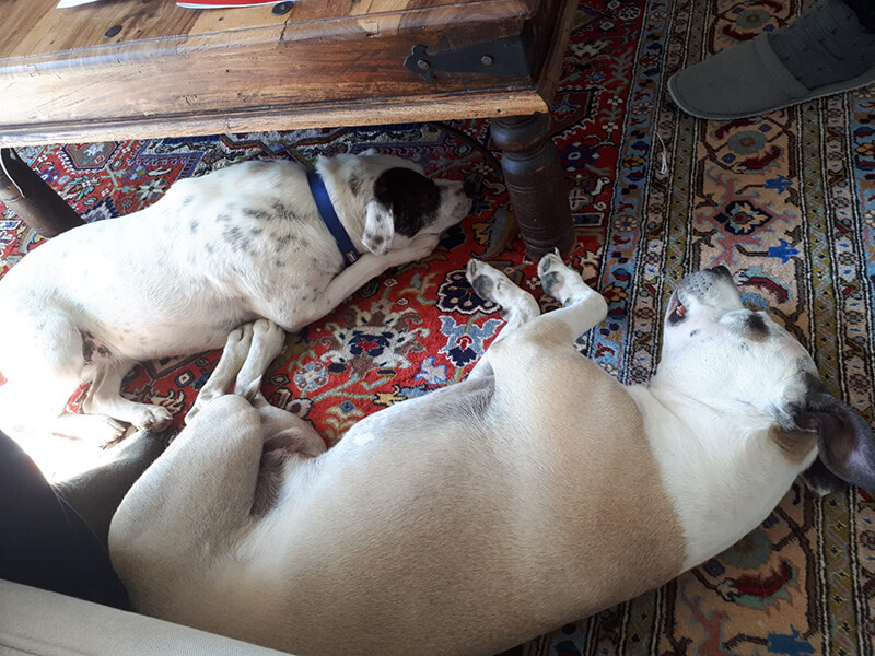 Kollektives Sonntag Nachmittagsschläfchen am 1.Tag in entspannter Atmosphäre ... schaut gut aus. Dixie hat sich auf Anhieb sehr gut eingefügt, die ersten Herausforderungen bravourös gemeistert, reagiert auf alle Eindrücke bisher sehr souverän....hoffentlich bleibt es so bzw. geht so geschmeidig weiter.