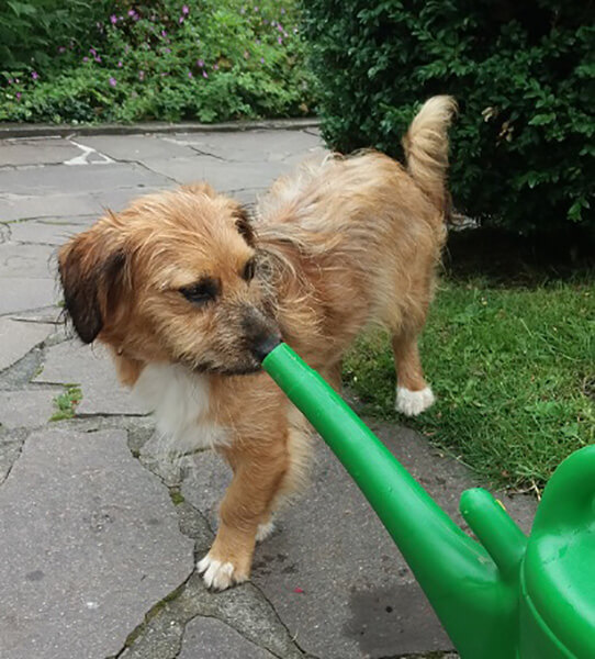 Sie ist sehr lieb zu anderen Hunden und auch mit den Nachbarskatzen versteht sie sich gut.