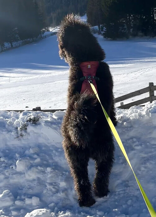 Bosco ist unglaublich lieb, schlau und gelehrig und macht uns beiden so viel Freude. Er spielt gerne alleine mit seinem Spielzeug sowie mit anderen Hunden auf der Hundewiese. Er genießt jede Kuschel-Einheit, die Fellpflege und vor allem mag er seine Snacks und seinen Napf. Auch mit unserem Senior-Kater versteht Bosco sich gut.