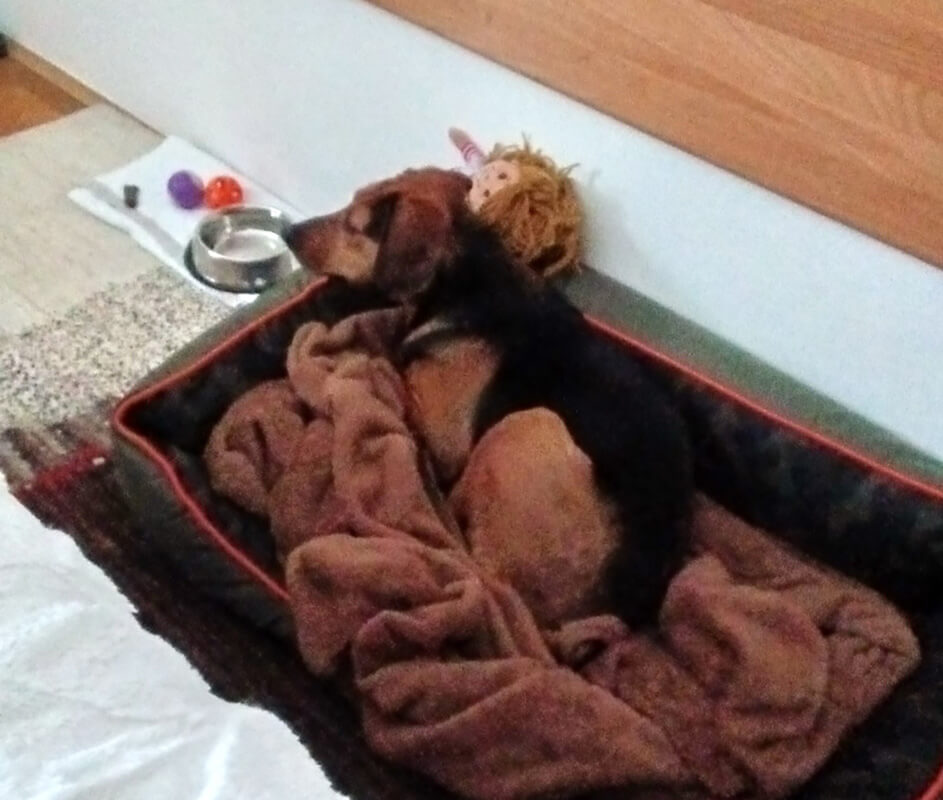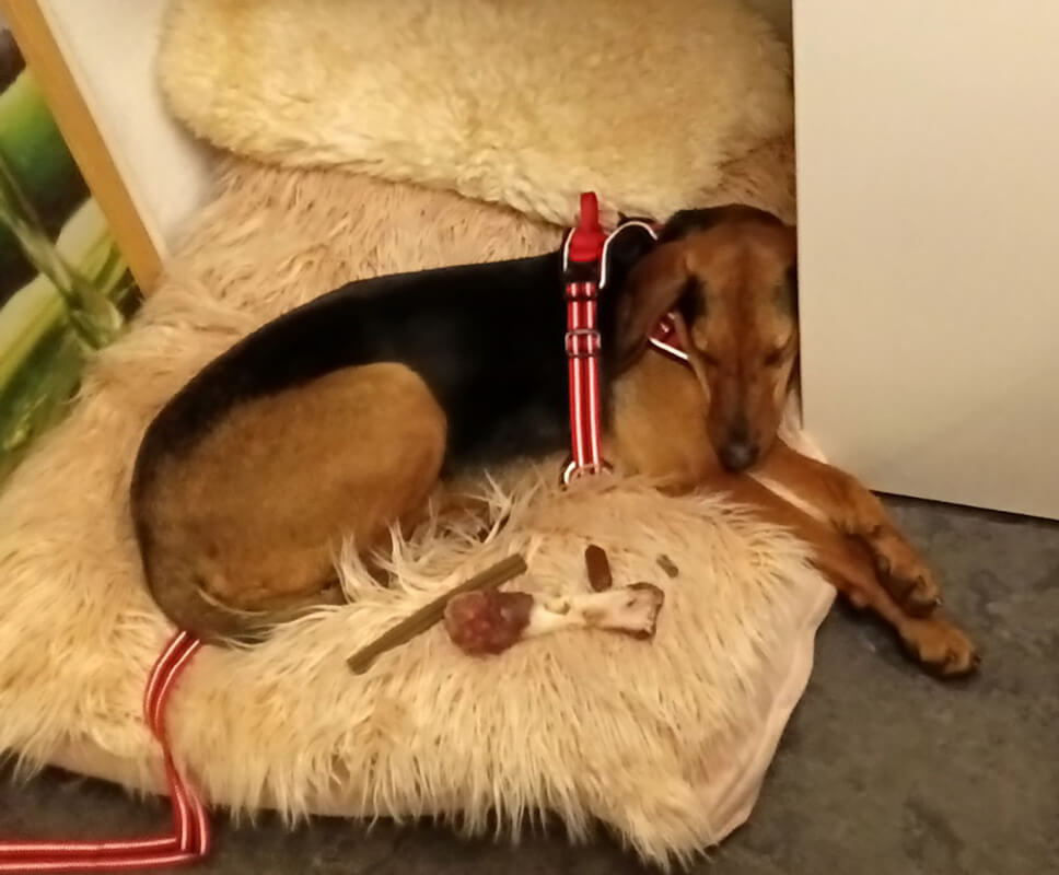 Ich hoffe, sie ist mit uns zufrieden. Jede Menge Ruhe, Essen, Wärme, Liebe und viele Hundesachen hat sie bekommen.