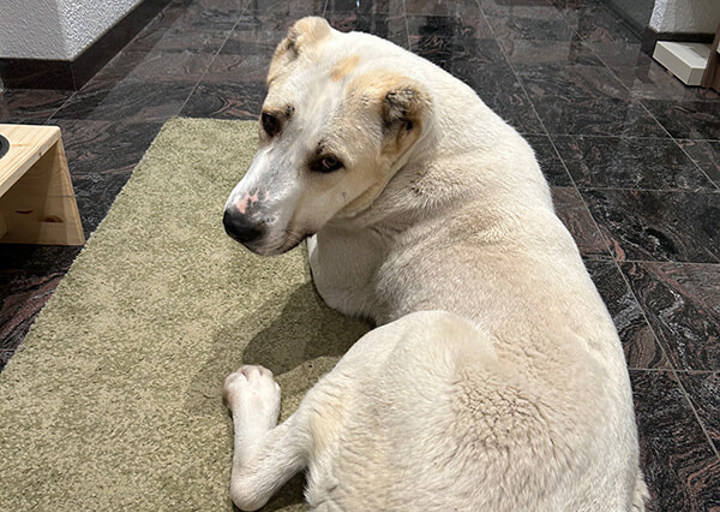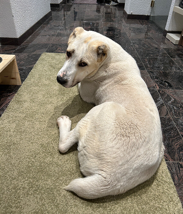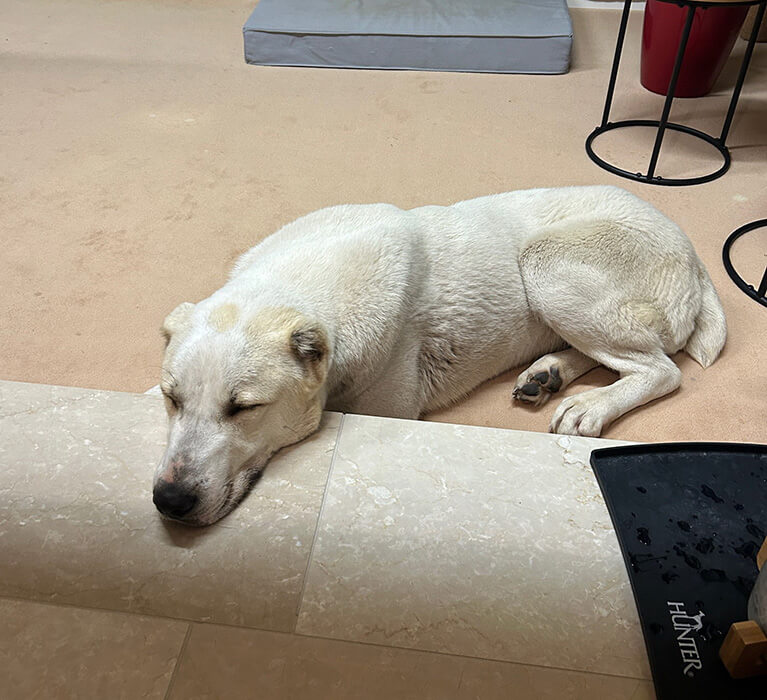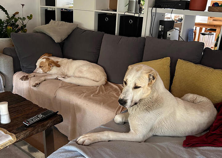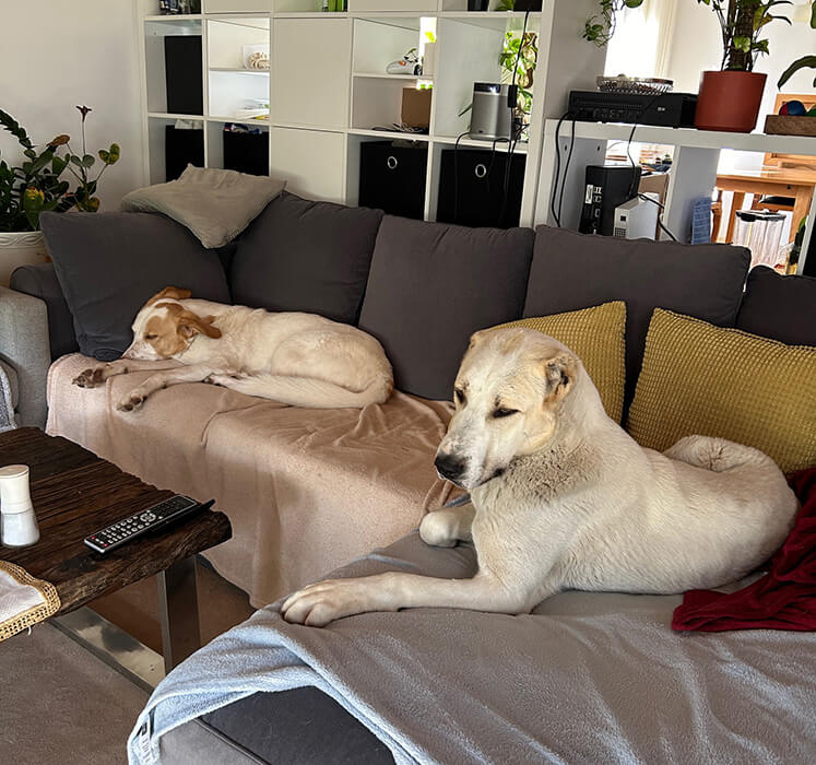 Sie ist wirklich ein Vorzeigehund! Total brav, lernt sehr schnell und ist sogar komplett stubenrein (hätten wir nicht erwartet). Sie genießt es sehr ein warmes Betti zu haben und zu kuscheln. Richtiger Schmusebär.