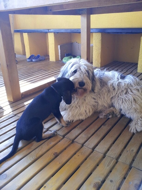 Anbei Fotos von ebby! Sie ist schon gewachsen und hat 1 kilo zugenommen. Seit Sonntag besuchen wir eine hundeschule. Auf dem Foto mit dem anderen hund, spielen die beiden ganz lieb. Das ist Bart, der nachbarhund. Und die beiden verstehen sich wirklich gut. Sie hat sich schon eingelebt und fühlt sich wohl.