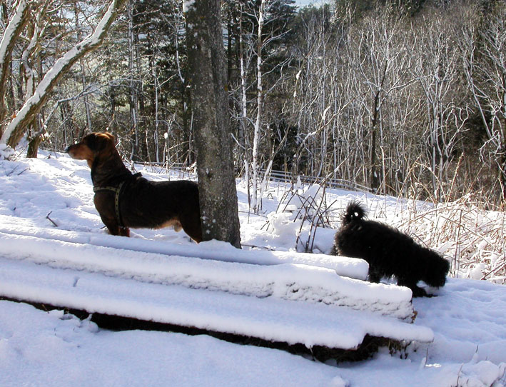 Natürlich können Sie die Bilder gerne verwenden, wir freuen uns ja, Teil einer "Erfolgsstory" für so ein kleines Hundchen zu sein. Ich schicke Ihnen noch ein Bild, welches sich vielleicht gut eignet und zeigt, wie die beiden schon zum Team werden,..jedenfallls, was das herumtollen im Schnee angeht.