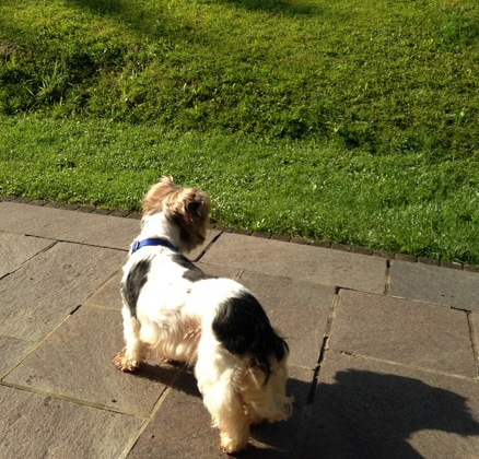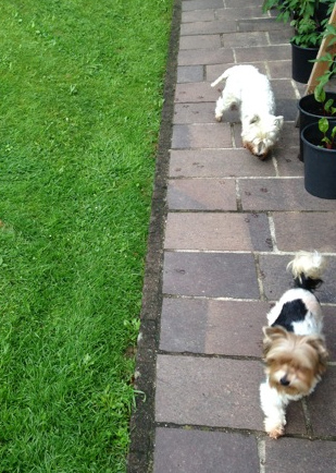 Die Übergabe hat lt. meiner Tochter super geklappt. Edita ist sehr gutmütig und relaxt, als wäre sie schon immer bei uns. Anbei einige Fotos mit unserer Westydame, und beim Erkunden des Gartens.