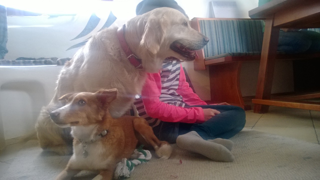 Endlich ist die Zeit wirklich etwas besinnlich geworden und ich finde Zeit ein paar Zeilen zu schreiben, was ich ja schon lange vor hatte. Elisa ist ja nun schon 2 Monate bei uns und mittlerweile ist es für uns normal geworden, dass sie hier ist. Sie ist in unseren Alltag gut integriert, aber das war natürlich nicht von Anfang an so, da mussten wir auch schon einige Feuerproben gemeinsam durchleben. Die ersten 2 Wochen waren für mich persönlich sehr anstrengend, weil ich ja die meiste Zeit mit ihr verbringe. Ich wollte so viel wie möglich "richtig" machen und das hat mich natürlich in eine große Anspannung gebracht. Bei jedem Gassi gehen wurde ich mit der Tatsache konfrontiert, dass ihr das Durchgehen von Türen und Korridoren großen Stress bereitet. Wie vorher geahnt war natürlich alles sehr beängstigend für sie und nach diesen 2 Wochen im neuen zu Hause stieg die Anspannung erst mal richtig an. Morgens beim Weggehen hatte sie vor lauter Stress in ihr Bettchen gepinkelt. Das war für mich der Punkt um Hilfe zu bitten. Eine ansässige Hundepsychologin war bei uns zu Besuch und half uns, die ganze Sache etwas lockerer zu sehen und vieles besser zu verstehen. Von da an ging es nur noch bergauf.
