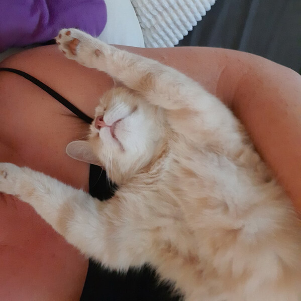 Elliot geht es sehr sehr gut. Er ist sehr anhänglich und liebesbedürftig. Seit Mai ist er im Garten unterwegs, versteht sich mit den anderen Katzen auch bestens.