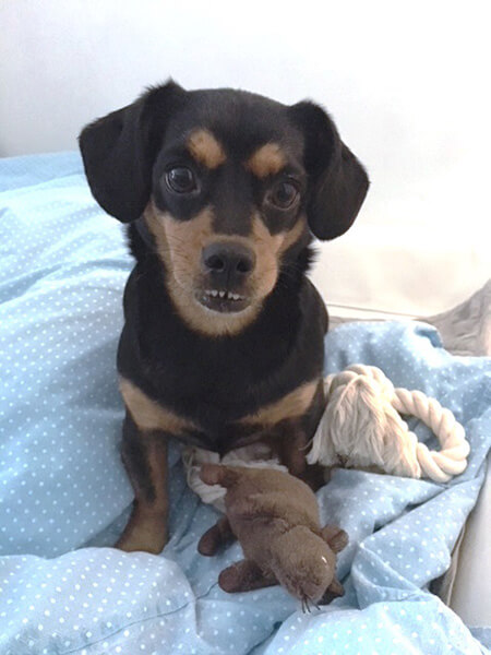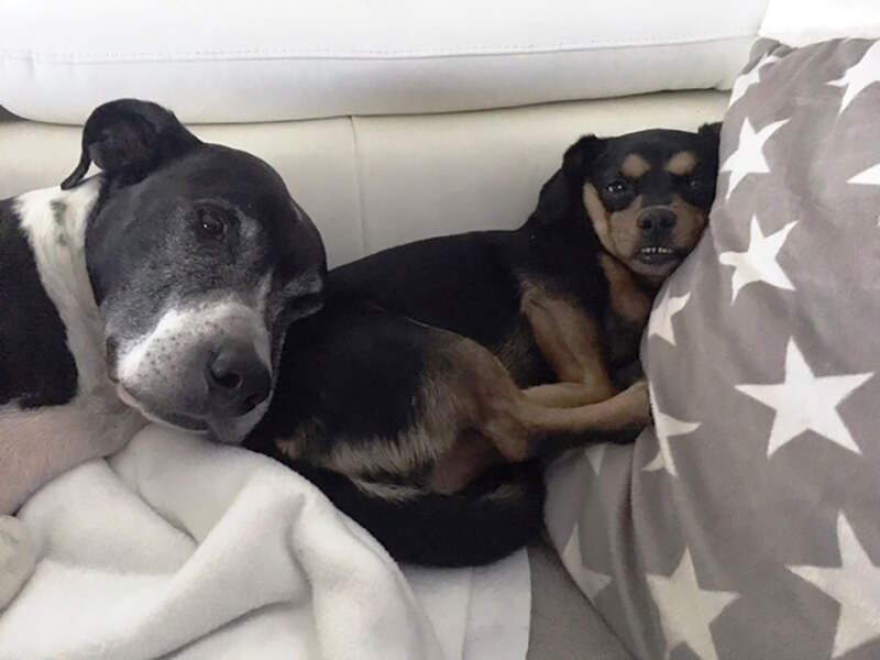 Sie ist so ein Sonnenschein, beginnt jeden Tag mit einem Schwanzwedeln, liebt ihren großen Bruder Jimmy und kuschelt mit ihm, wie man auf den Fotos sehen kann!