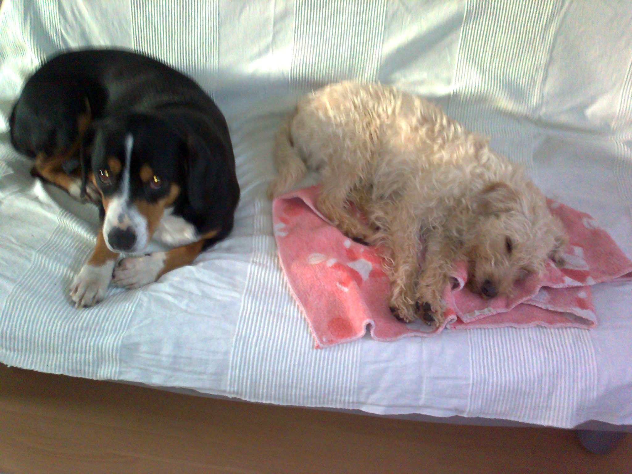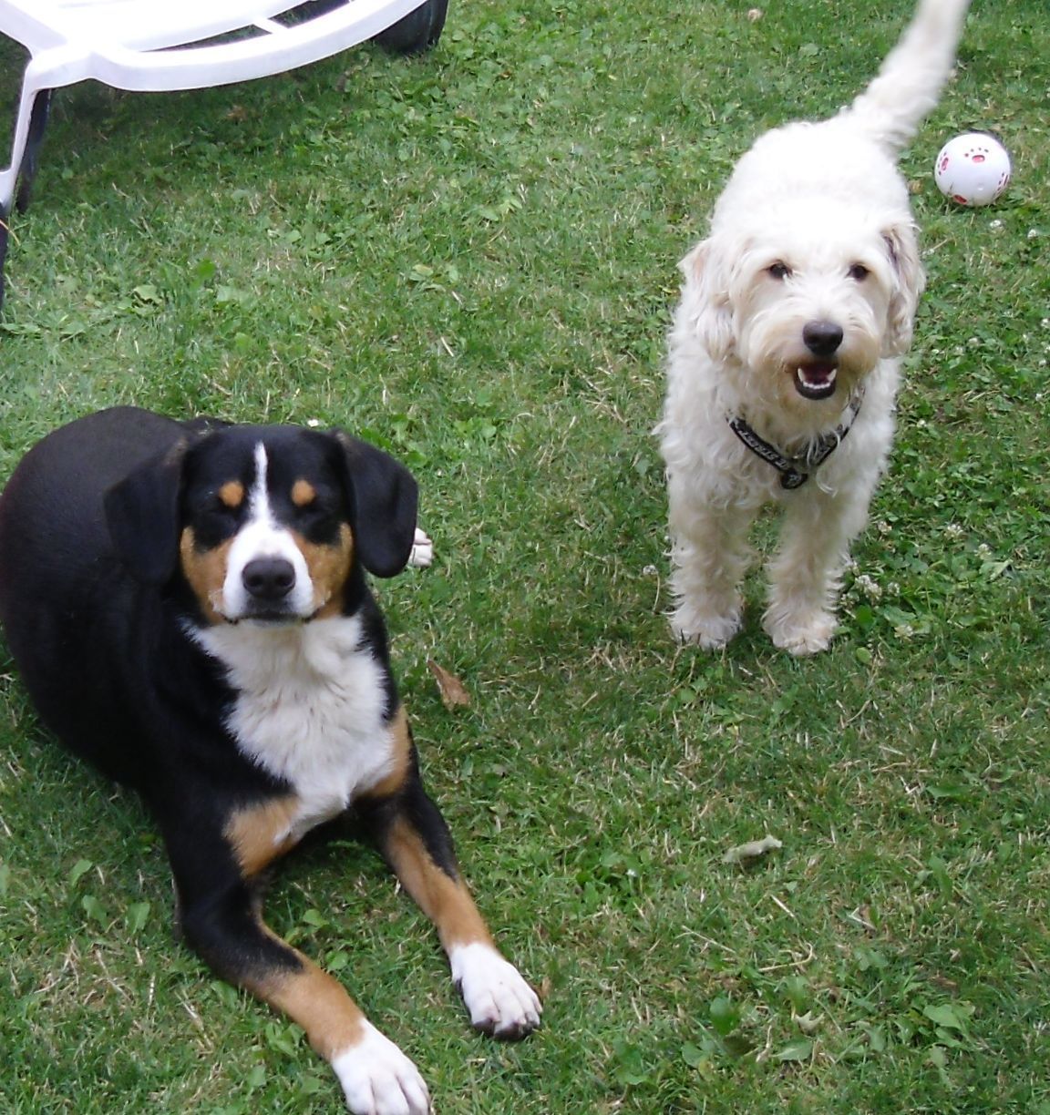 Nach langer Zeit wieder einmal ein Lebenszeichen von uns! Anbei einige Bilder von meinen Hunden. Ich glaube man sieht, wie ausgeglichen sie sind! Emil hat sich etwas angepasst, von der Leine lassen darf ich ihn aber nicht! Einen Unfall gab es leider auch, verletzt wurde aber nur ich und nicht der Hund, ich trug eine Gehirnerschütterung davon, aber dadurch ist mein Leben abwechslungsreich.