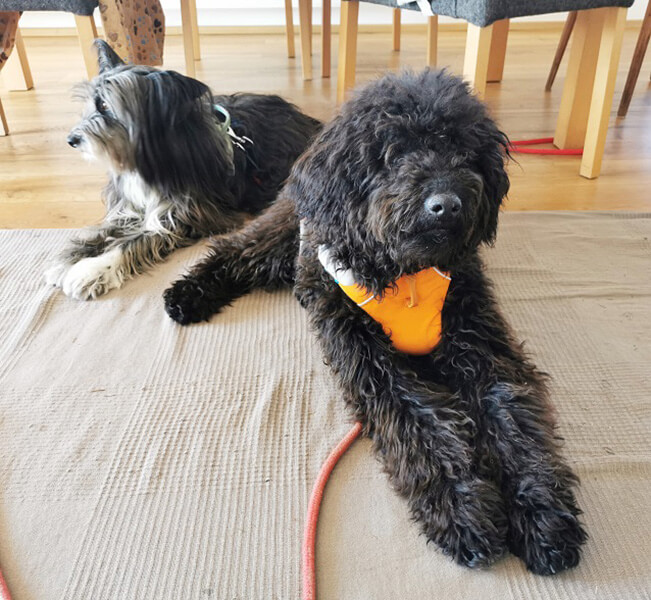 Momentan üben wir gerade das Einsteigen ins Auto, da er sich ein bisschen fürchtet und wenn die Hundeschulen wieder mit ihren Kursen beginnen, möchten wir auch einen Junghundekurs mit ihm besuchen, damit er mehr Kontakt auch zu anderen Hunden hat, da wir ja sehr abgelegen wohnen!