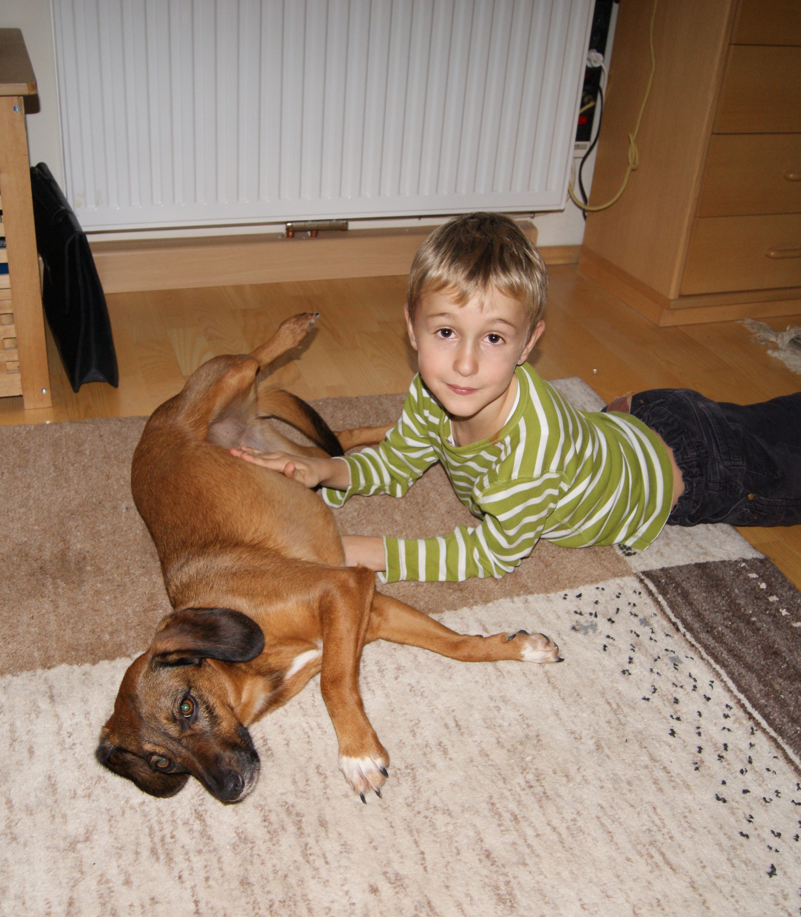 Heute vor einer Woche kam Emily zu uns und sie hat sich schon sehr gut eingelebt; Sie ist sehr brav, geht sehr brav - auch ohne Leine - mit mir, läßt sich gut abrufen. Mit den Enkerln geht sie brav an der Leine. Sie ist sehr anhänglich und eine ausgesprochene Schmuserin Bellen hab ich sie erst zweimal gehört.