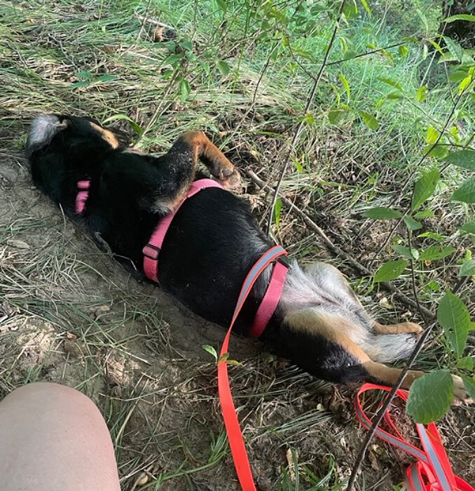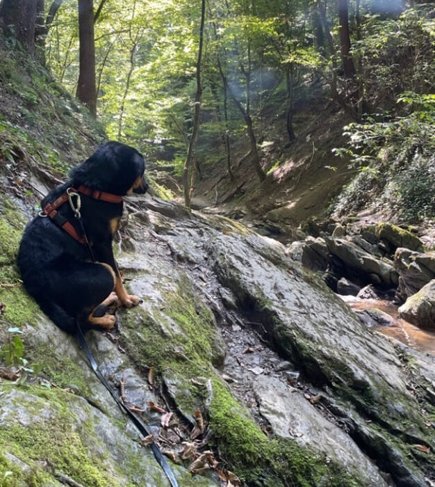Wie Sie sehen können, liebt Emily die Bewegung in der Natur – so wie ich. All die Plätze die sie sehen, sind fußläufig in wenigen Minuten von unserem zu Hause aus erreichbar. Ob Bäche, Wiesen oder Wälder – wenn es Emily während ihrer ausgiebigen Erkundungstouren irgendwo besonders gefällt, entschließt sie sich spontan zu einem Nickerchen. Dabei fasziniert mich noch immer, wie sich Emily binnen weniger Sekunden tief fallen lassen kann. Diese gemeinsam stillen Momente genieße ich ganz besonders. Aber natürlich auch die gemeinsamen Kuscheleinheiten, die Emily stests königlich in Empfang nimmt. :)