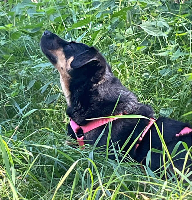 Emilys „Happy Story“ hat etwas auf sich warten lassen….Die neue Lebenssituation hat ihr sensibles Wesen die ersten sechs Wochen vor große Herausforderung gestellt, die sie dennoch unglaublich tapfer gemeistert hat. Trotzdem war das Leuchten in Emilys Augen und das für sie typische verschmitztes Lächeln (so wie ich Emily aus Svilos und den damaligen Fotos in Erinnerung hatte) leider nicht zu sehen. Für mich zugleich eine Bestätigung wie wohl und glücklich sich Emily in ihrem ehemaligen Zu Hause in Svilos gefühlt hat. Auch mir und meiner Mutter werden Natasa, das gesamte Team und deren liebevoller Umgang mit den Hunden für immer in Erinnerung bleiben. An der Stelle ein herzliches Dankeschön! Jedenfalls habe ich lange Zeit tatsächlich viele Fotos gemacht um sie mit Ihnen zu teilen und doch war kein einziges dabei, auf dem Emily glücklich gewirkt hätte…