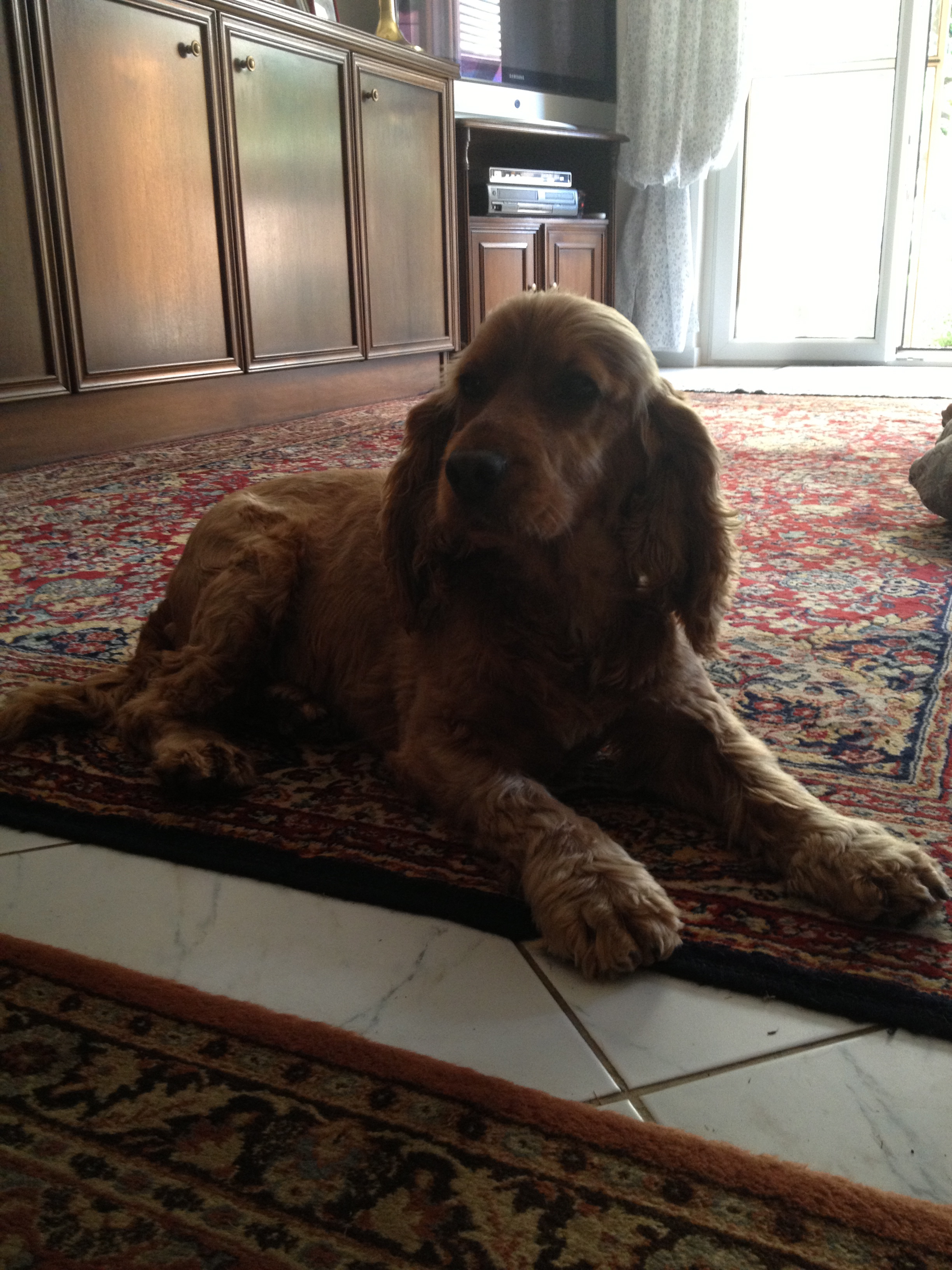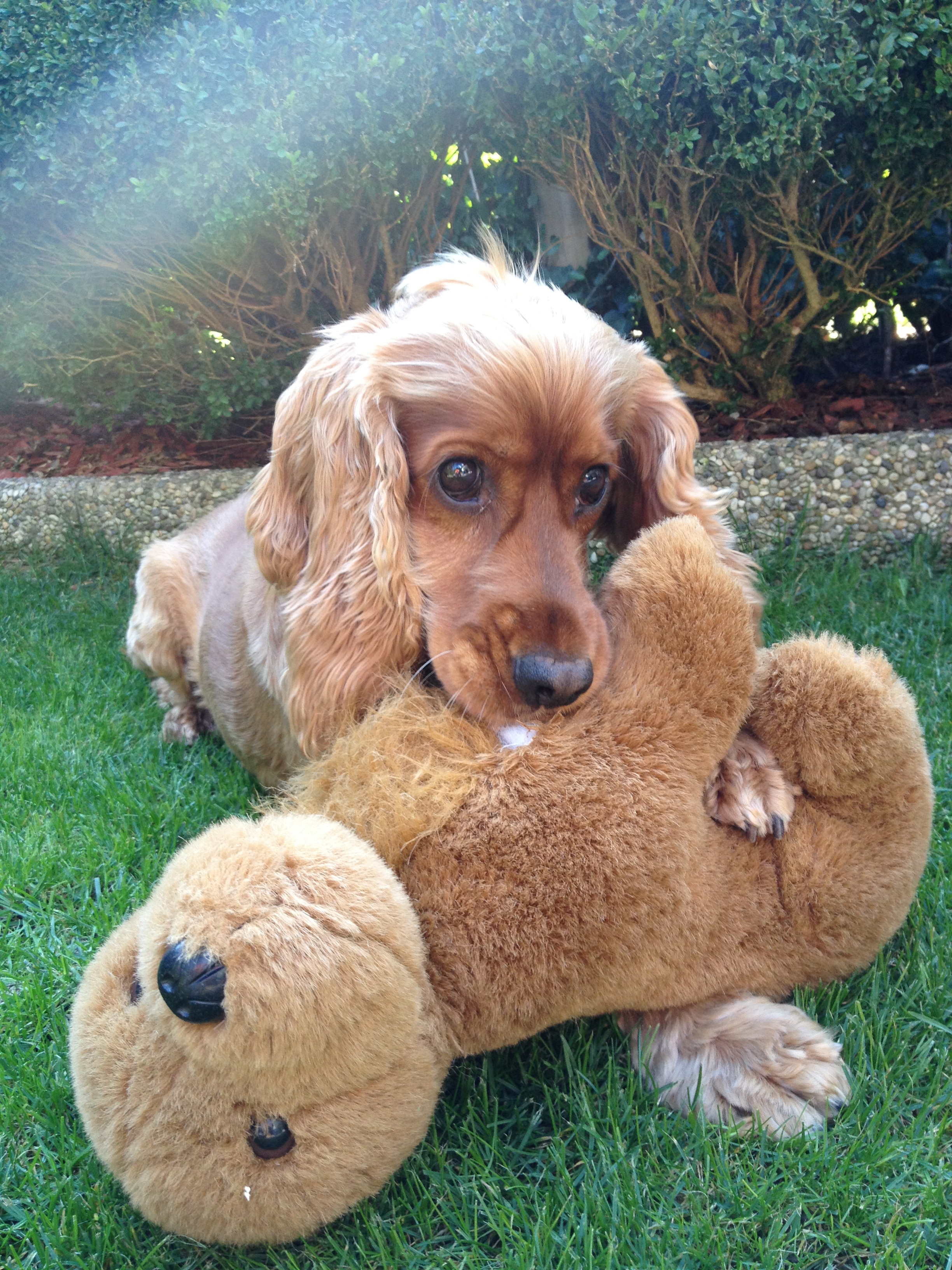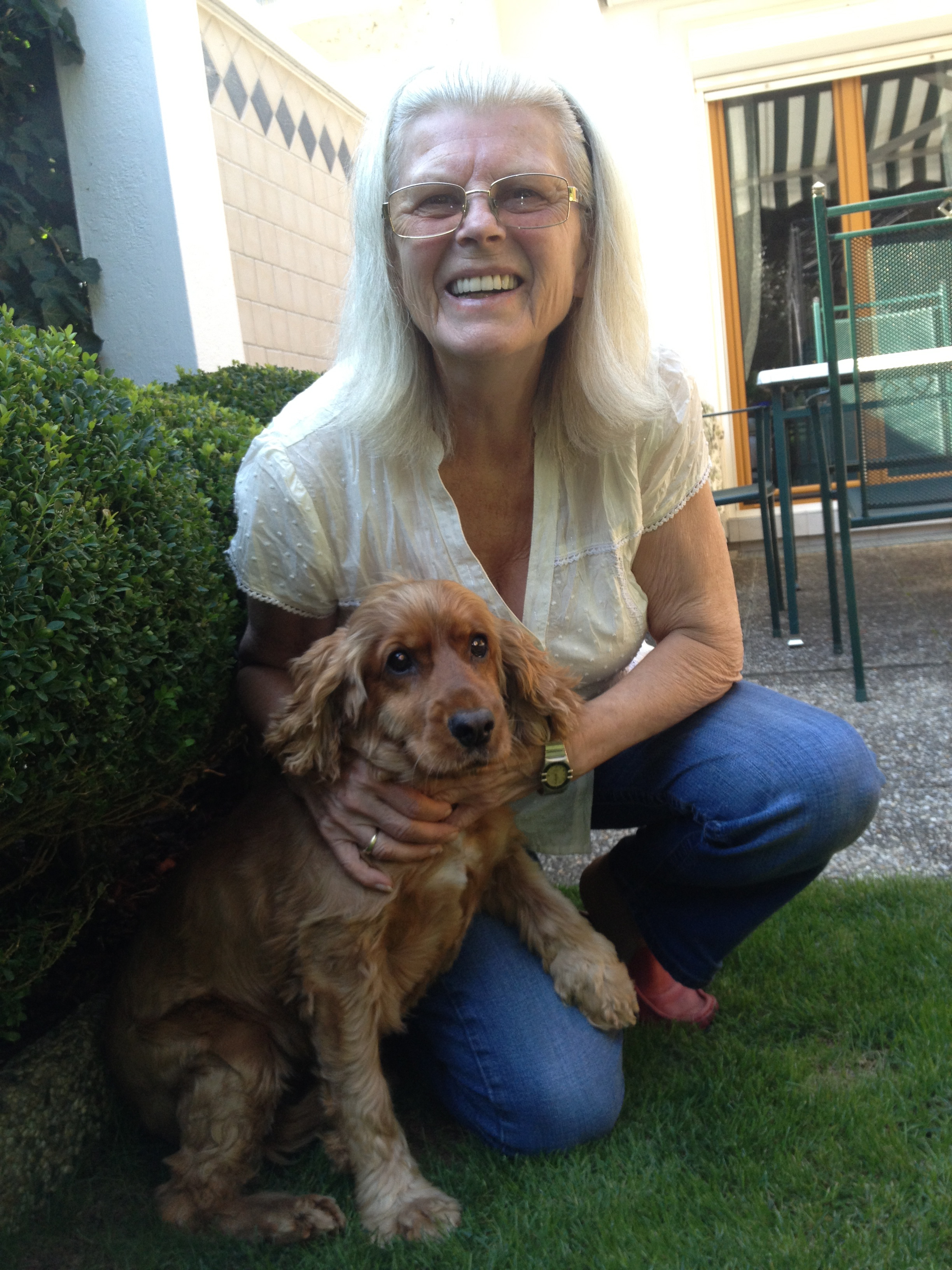 Jetzt ist es schon über ein Jahr her, dass Emily bei mir ist. Sie bereichert einfach jeden Tag , ist so ein wunderbarer Hund. Freundlich zu wirklich Allem und Jedem, sie wedelt, wie es sich für einen richtigen Spaniel gehört, immer mit ihrem Schwanz und ist richtig verspielt. Emily ist ein kleines Temperamentsbündel, wir gehen jeden Tag sehr viel spazieren - langsam hat sie schon richtig tiefes Vertrauen in mich gefasst und ich kann sie sogar schon auf der Wiese von der Leine lassen. Dort liebt sie es im Wasser und im Moor zu baden und mit ihren Hundefreunden zu spielen. Kinder zählt sie zu ihren ganz besonderen Freunden - ob es meine Enkel sind oder die Nachbarskinder - es gefällt ihr irrsinnig gut von ihnen gestreichelt zu werden oder mit ihnen zu spielen - sie ist so zärtlich und sanft. Jeden Abend bekommt sie ihre "wilden 5 Minuten" - da rast Emily durch das Haus und den Garten, ihr Lieblingsstofftier, den "Hund"(siehe Foto ;)) immer im Maul. Es ist so schön zu sehen, wie ausgelassen sie mittlerweile spielt, was für eine Freude sie hat.