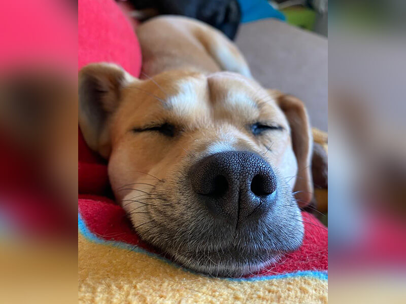 Er ist von Anfang an ein Familienmitglied. Er hat sich sofort integriert und kann jetzt nicht mehr ohne uns und wir nicht mehr ohne ihm. Er schläft Abends bei uns im Bett natürlich mit den anderen beiden Hündinnen.