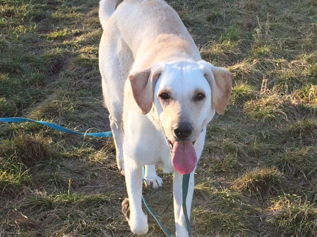 Draußen fällt auf dass er eher mißtrauisch gegenüber Menschen ist. Er duckt sich weg und versucht auszuweichen. Regelrecht Angst hat er vor dunkel gekleideten kräftigen Männern, v.a. mit Wanderstecken. Da friert er ein und steht bewegungslos da, bis der Mann verschwunden ist. Anderen Hunden gegenüber ist er zurückhaltend und zeigt ganz klar seine Grenzen. Wenn ein anderer Hund zu stürmisch ist, knurrt er. Ich versuche möglichst oft mit anderen Hundehaltern und ihren Hunden zu gehen, so dass er sehen kann wie sich die anderen Hunde verhalten und dass er vor Menschen keine Angst haben muß. Das wird von Tag zu Tag besser und von Zeit zu Zeit taut er schon richtig auf und rennt ein Stück mit den anderen Hunden mit. Ab und zu macht er sogar schon eine Spielaufforderung. Ich habe ihn an der Schleppleine, das funktioniert recht gut. Die anderen Hunde respektieren ihn, keine Streitereien oder Machtdemonstrationen. Er hat sich gut in das "Himmelhof Rudel" eingefügt.