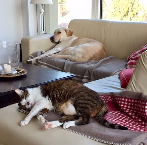 Erik war sehr traurig als er sein altes Zuhause plötzlich leer vorfand und hat eine Nacht in der neuen Wohnung gewimmert und geweint. Als er aber merkte, dass alles mitgekommen ist ins neue Heim, hat er sich sehr schnell sehr gut eingewöhnt.