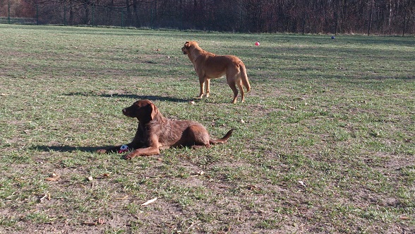 Außerdem machen wir mit beiden seit einem Jahr Antijagdtraining, da wir irrsinnig viel Wild haben, und hobbymäßig Dummytraining mit Erni und Rückspursuche mit Mack (haben wir gerade begonnen).