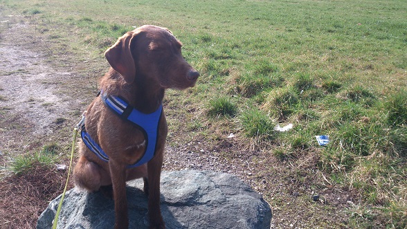 Ich hoffe, man kann die Fotos anschauen. Alle Fotos, auf denen Mack das dunkelblaue Geschirr trägt, sind Fotos vom Trailen, also quasi “Mack bei der Arbeit” ;).