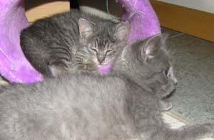 So das war ein kleiner Lagebericht! Die Katzen bereiten uns allen grosse Freude u. sind richtige Schmusetiger, wenn ich abends auf der Couch liege, sind meine Katzen gleich bei mir und schnurren!, ich denke sie fühlen sich sehr wohl in ihrem neuen Zuhause!
