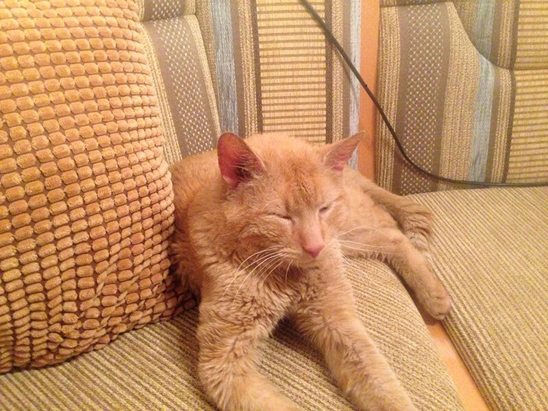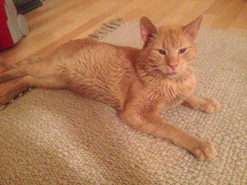Er frisst unglaublich viel und putzt sich wieder. Er bewegt sich in der Wohnung als würde er sie schon ewig kennen und versteckt sich kaum, außer es wird staubgesaugt.