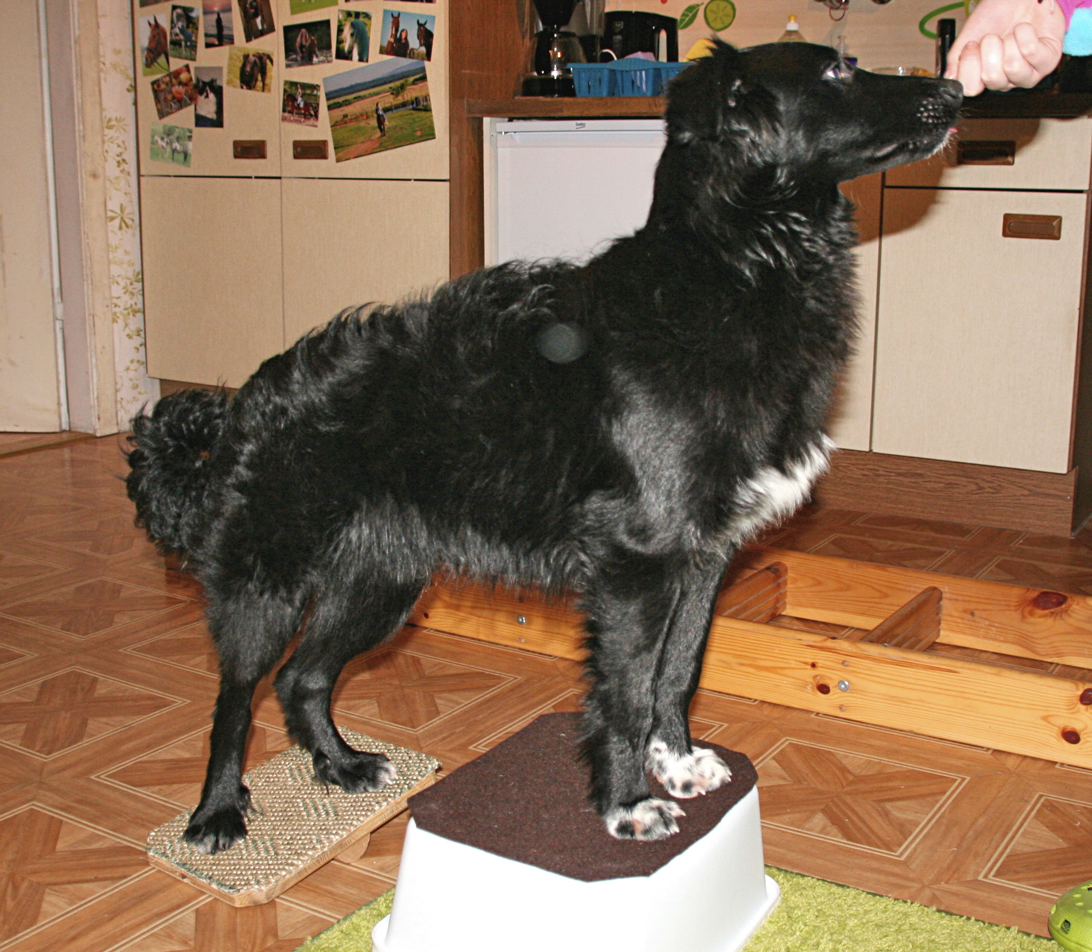 Aber wie gesagt, gehts uns sehr, sehr gut! Felix macht alles mit und lässt sich für alles begeistern, und sei es sich auf Wackelbretter zu stellen. Er möchte immer gefordert werden, vor allem geistig. Im Moment lernt er gerade mir bei den Pferden beim aufräumen zu helfen, indem er Kleinigkeiten wie zB. Gamaschen von den Pferden neben mir her trägt, damit ich nicht mehrmals laufen muss. oder er hebt mir auch schon Dinge auf, wenn ich ihn darum schicke, wenn mir was runterfällt. Mein absoluter Traumhund!