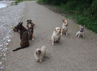 ALLE hunde auf den Fotos sind aus dem Tierschutz und haben eine zweite Chance bekommen(auch ein Podenco aus Spanien ist dabei). In der Gruppe (leider nicht auf den fotos) ist auch noch ein blinder Hund aus Ägypten und zwei Nitra-Hunde. Allesamt TRAUMHUNDE! Zeitweise sind wir 25-30 Hunde, die alle freundlich miteinander umgehen. Es ist ein großes