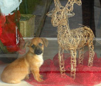 In unserem Geschäft is sein Lieblingsplatzerl in der Auslage (auch hierzu gibts ein Foto).