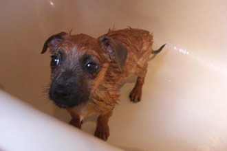 Am Montag waren wir beim Tierarzt und es war alles in Ordnung. Davor hat er auch seine erste Dusche "genossen" - schick dir auch ein paar Fotos mit :).