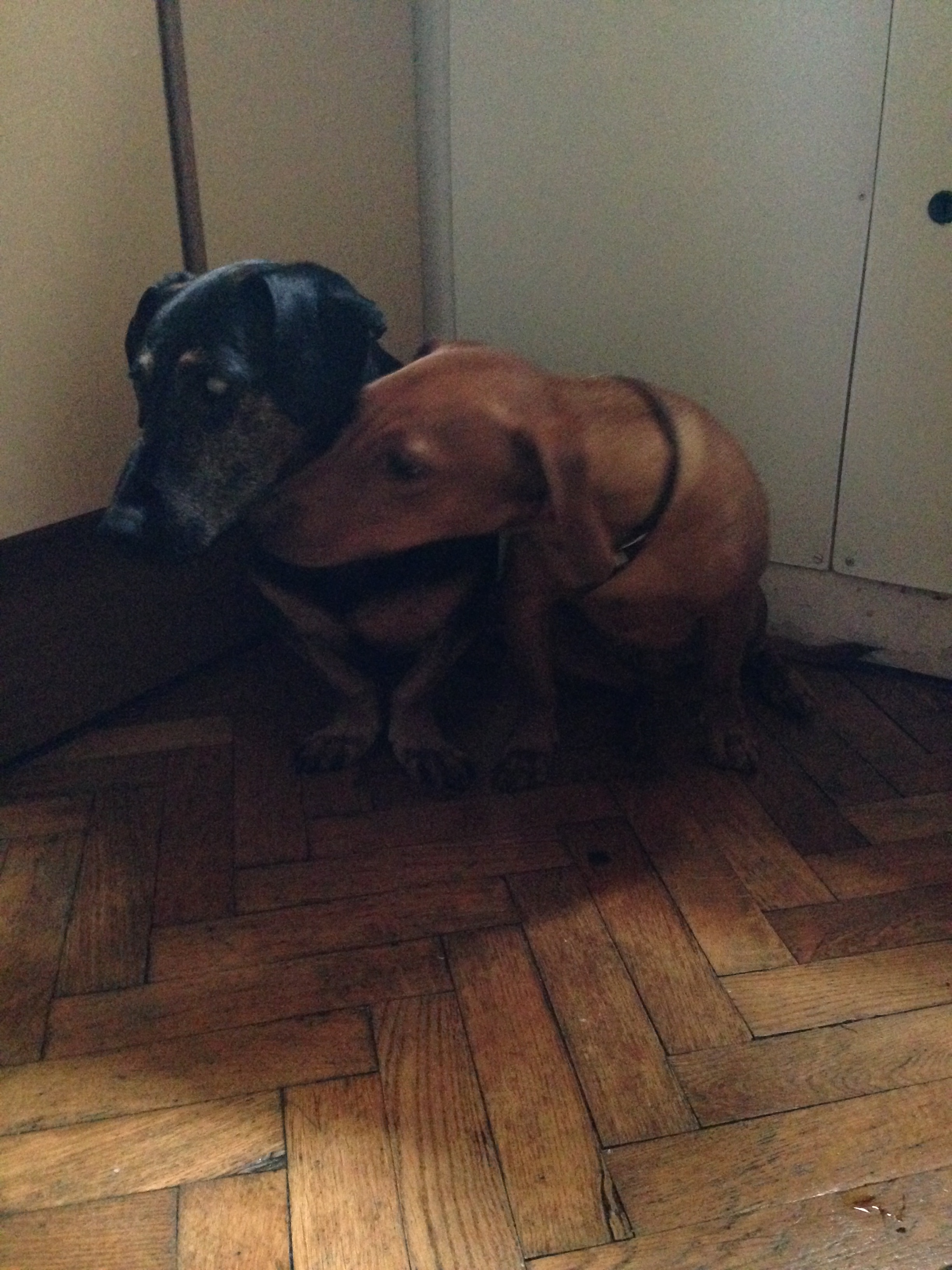Sein "großer Bruder" Tibor, von meiner Schwester adoptiert, kommt auch gerne auf Spaziergänge mit, hat aber einen ruhigeren Charakter als Filou! Die Beiden verstehen sich sehr gut. Ich würde auch behaupten dass Filou Tibor ein paar Jahre jünger gemacht hat.