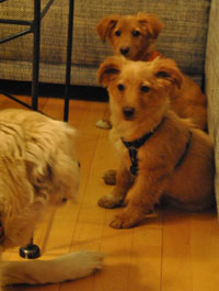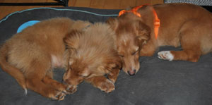 Sie sind beide sehr verschmust! Lernen schnell, können aber auch ganz schnell durch den Garten flitzen! Spielen sehr gern mit Gwenny, die Golden Retriever Hündin meiner Mutter, Sammy ist schon ein alter Greis und so beobachtet er aus der Ferne die zwei frechen Hüpfer ...