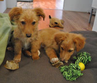 anbei wie versprochen die Fotos. Den Beiden geht es gut. Haben nur ein wenig Durchfall, aber der lustige Tierarzt (Dr. Josef Schick www.schlosstierarzt.at 02772/ 55850) hat ihnen etwas gegen Milben, Flöhe etc. gespritzt und mir auch ein Pulver mitgegeben. Am 10. Mai gibts wieder eine Tollwut Impfung, er hat gesagt das die Beiden sehr gut immunisiert wurden! Danke!