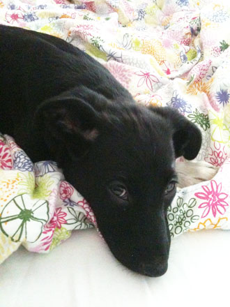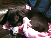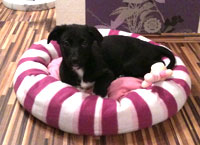 Hiermit möchte ich Ihnen wie versprochen einmal die ersten Bilder unserer entzückenden Maus schicken. Sie ist zwar sehr fotogen aber fototechnisch leider auch sehr schwarz. Ich hoffe man kann sie trotzdem gut erkennen. Finny ist wirklich bezaubernd, geht schon brav draußen Gassi und liebt lange Spaziergänge. In der Nacht schläft sie super brav.(Zusatz: bei uns in der Mitte ;-))