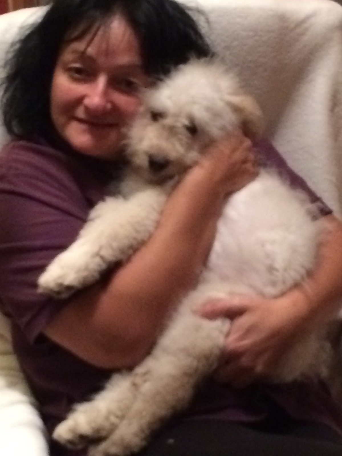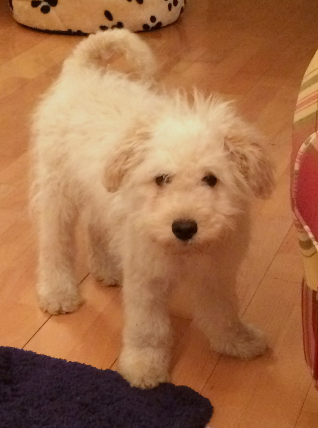 Floppy ist vom Wesen her absolut entzückend, ist sehr verspielt und absolut verschmust. ER hört bereits auf gut auf seinen Namen und auf die Befehle “Sitz” und auf “Komm” ist noch sehr stark auf mich fixiert, aber der nun tägliche Kontakt zu meinen Eltern und den vielen Spaziergängen lockert dies schon ein wenig. Hungrig ist er immer - wie ein kleiner Wolf und nächtens schläft er immer ganz brav in seinem Körbchen im Wohnzimmer und freut sich jeden Tag, bis es endlich Morgen wird und ich mit ihm spielen kann.