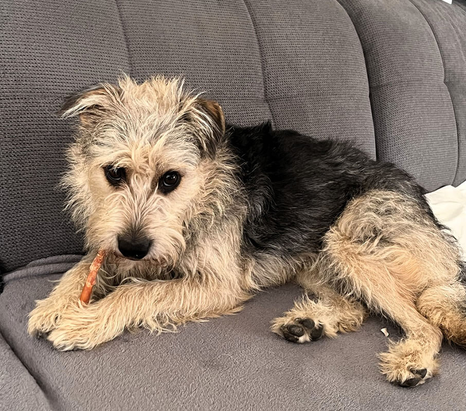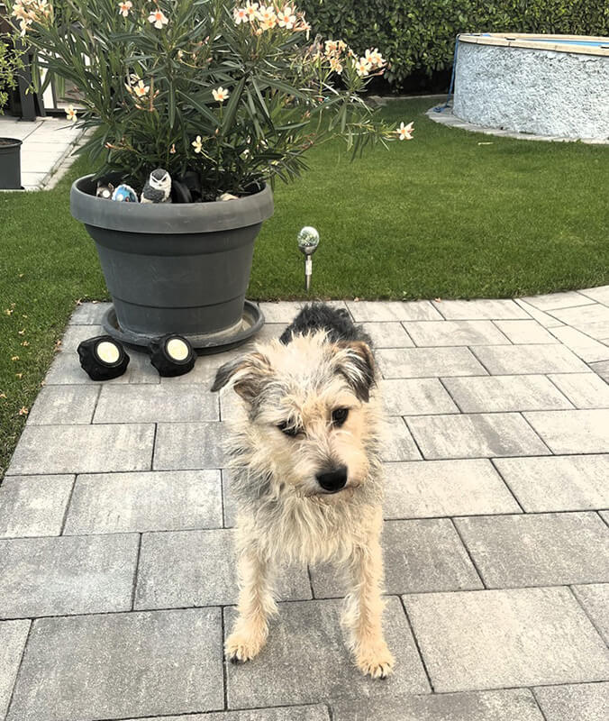 Er ist ein cooler Hund, so einen wollten wir haben wir sind sehr froh, dass wir ihn gefunden haben.