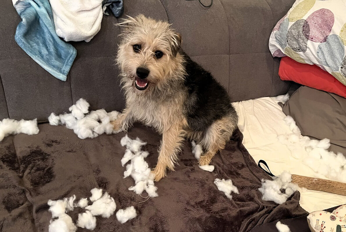 Inzwischen hat er sich schon ganz gut eingelebt (hat ein bissl gedauert, da er seeeehr ängstlich war gegenüber Menschen, Geräuschen und sonst so allem was er noch nicht gekannt hat). Gerne zerlegt er sein Spielzeug in die Einzelteile und dabei kann er sehr unschuldig schauen. Auch die Verteidigung von Haus und Garten nimmt er sehr ernst :-). Feind Nr. 1 ist der Typ im gelben Auto, der immer Briefe und Packerl bringt :-). Aber auch sonst erschreckt er gerne alle die am Haus vorbeigehen. Beim Spazierengehen ist er inzwischen eine gnadenlose Lokomotive und im Garten spielt er am liebsten Verstecken und Fangen.