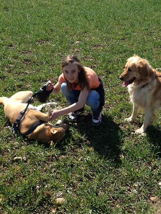 Um dir zu zeigen das Foxy Kinder liebt, sende ich dir diese Fotos mit meiner Tochter beim heutigen Auslauf!!!! Und ja , Katzen jagt er überhaupt nicht , bei mir leben zwei Katzen und Foxy zeigte absolut kein Interesse !!!!! Aber das ist jetzt auch egal weil wir ihn ja nicht mehr hergeben, er ist jetzt unser Baby und ein vollwertiges Familienmitglied bei uns. Ich möchte mich nochmals bedanken für eure großartige Arbeit die ihr leistet und für Foxy :-))))).
