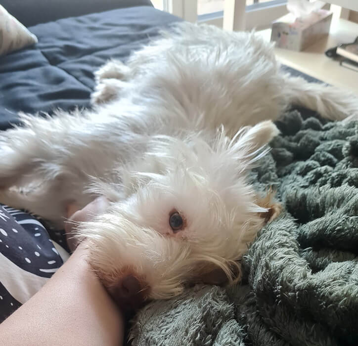 Und super rücksichtsvoll mit unsrer Hündin. Die zwei freunden sich schon langsam an.