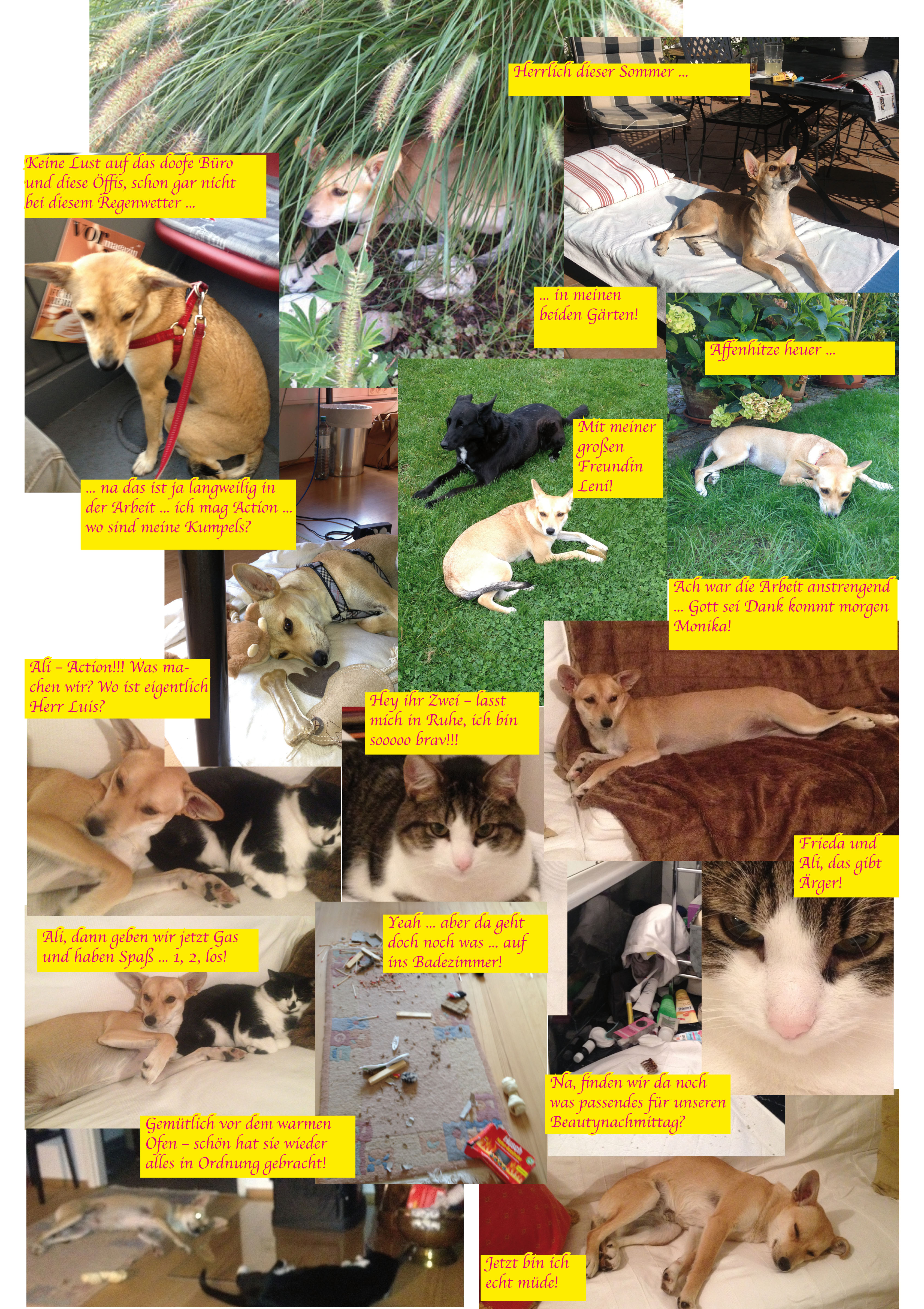 ich hoffe es geht Ihnen gut. Anbei eine Fotostory "zum Schmunzeln" von Fräulein Frieda (und dem Rest der Bande). Ihr geht es blendend und sie hält uns und auch unsere Hundesitterin Monika ganz schön auf Trab! Ich vermute, Sie ist jetzt mit ihren ca. 2 1/2 Jahren in der "Pubertät" bzw. hat sich jetzt richtig eingelebt, weil das Fräulein wird zunehmend frecher – und schlimmer. Weil die Öffi-Fahrt ins Büro nach wie vor bei ihr eine "Zitter-Krise" auslöst, haben wir ja eine ganz liebe Hundesitterin eingecheckt, damit sie maximal 3 Tage "Arbeiten" muss. Und wenn Sie dann kurz alleine zuhause ist, "zerlegt" sie neuerdings meine Wohnung (Fotos unten!).