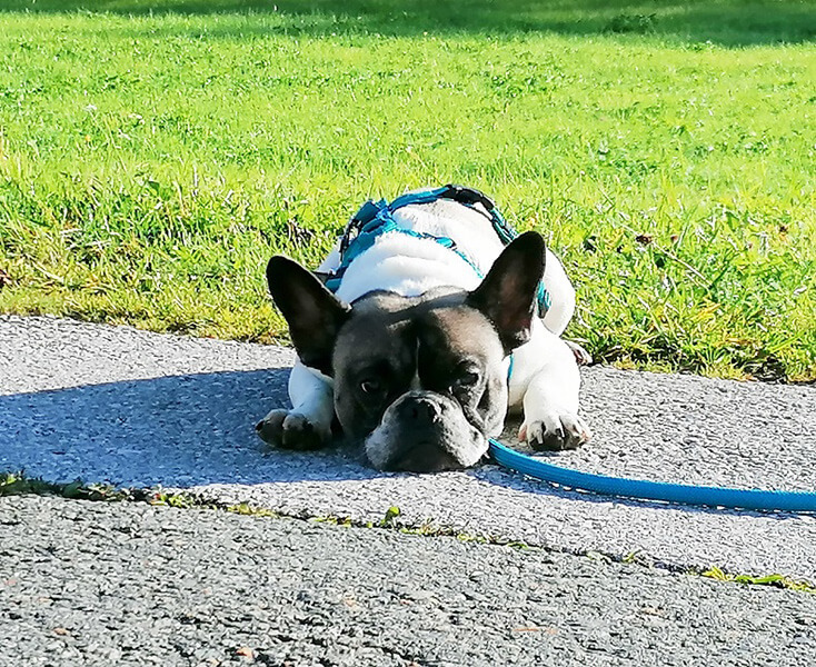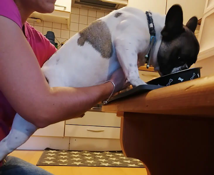 Franky geht's wieder gut, seit wir uns an die Maßnahmen bei der Fütterung halten (Essen im Stehen 😀) und bei den Leckerli sehr streng sind.