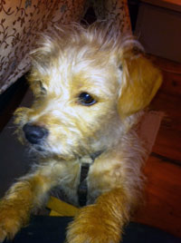 Ich selbst kann nur bestätigen: er lernt sehr schnell und ist äußerst konstruktiv: Egal wo ich ihm einen Platz bereitete mit Polster, Decke od ähnlichem, er hat's sofort gecheckt und ihn angenommen. Als ich ihn das 2. Mal vormittags alleine ließ ab Mitte Dezember - davor kam er vormittags zu Frau Kyrer um ihm nicht zu viel Streß zuzumuten nach dem Krank-sein etc.- ging er von selbst auf den Platz, hat sich entspannt mit einem Hundepansenteil hingelegt, als wär's das selbstverständlichste auf der Welt. Kein Winseln, kein Jaulen, kein Bellen nichts.