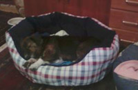 Auf Dosenfutter pfeift er, es wird ja extra gekocht....hihihi....er knabbert fleissig an seinem Kauknochen herum und was mich wundert: er macht nicht rein! Ich geh zwar brav raus mit ihm, aber morgens hat er gleich beim rausgehen alles verrichtet,da hätte er auch schon drinnen was verlieren können. Hmmmm???? ... der kann ja nicht stubenrein sein!!!