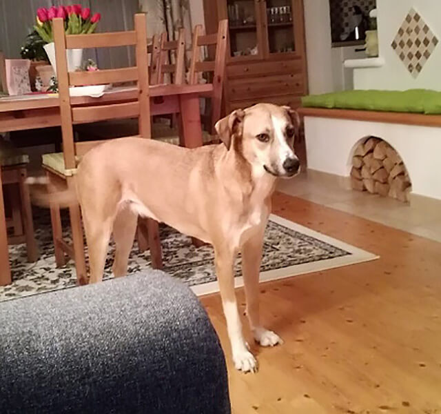 Und schau mal wie toll ich zugenommen habe. Mittlerweile habe ich 28 kg und die stehen mir sehr gut, jetzt bin ich ein richtiger kräftiger Hund geworden, mit einer riesen Kondition.