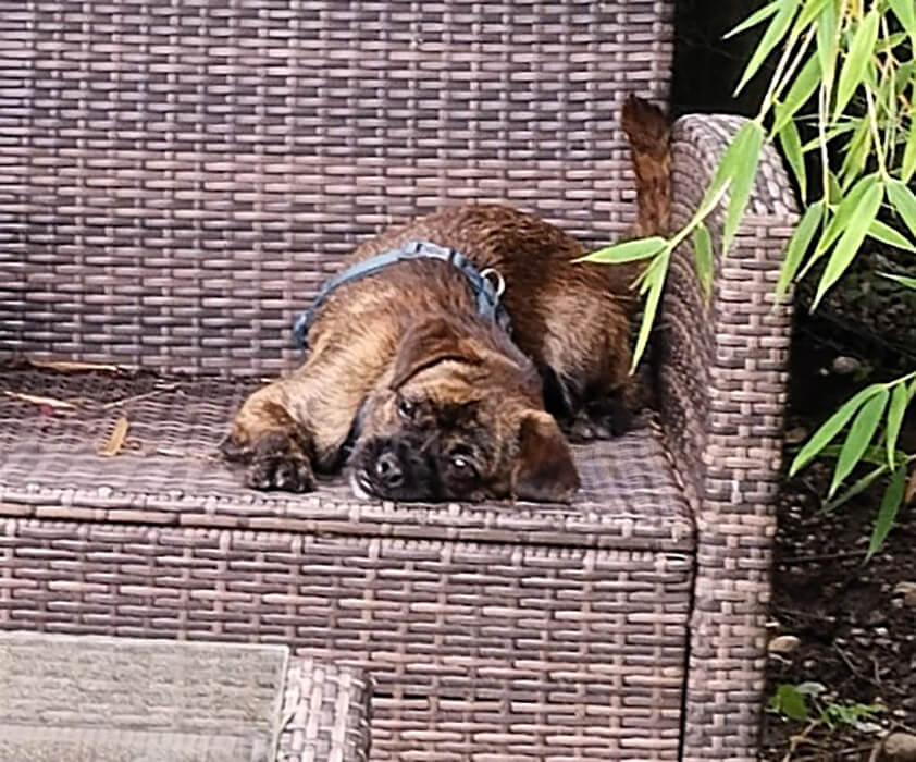 Liebe Grüße von unserem Gery an euch. Er hat sich schon gut eingelebt. Gery hat so ein liebenswertes Wesen, und wir sind schon alle verliebt in ihn. Paul und Gery sind schon gute Freunde. Er ist vom ersten Tag an stubenrein, und gelegentlich bekommen wir schon ein "Sitz" hin.
